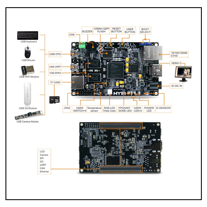 بُرد توسعه Xilinx Zynq-7000 مدل MYS-7Z020-V2-0E1D-766-C-S محصول شرکت MYIR، یک ماژول قدرتمند برای توسعه انواع سیستمهای هوشمند و صنعتی است. این برد مبتنی بر تراشه Zynq-7020 SoC میباشد که ترکیبی از یک پردازنده دو هستهای ARM Cortex-A9 و یک FPGA با قابلیت برنامهریزی بالا را در یک چیپ مجتمع ارائه میدهد.